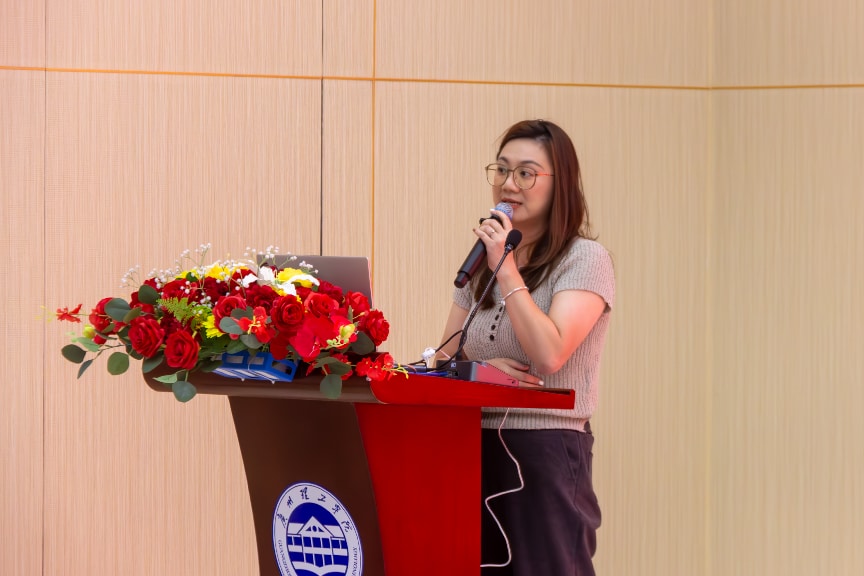 科廷大学新加坡校区招生与市场副总监Kelsey Chen在致辞中对广州理工学院留学服务中心的成立表示祝贺。她表示应以中心成立为新契机,深化两校合作、创新育人模式,实现资源共享、优势互补、协同育人。