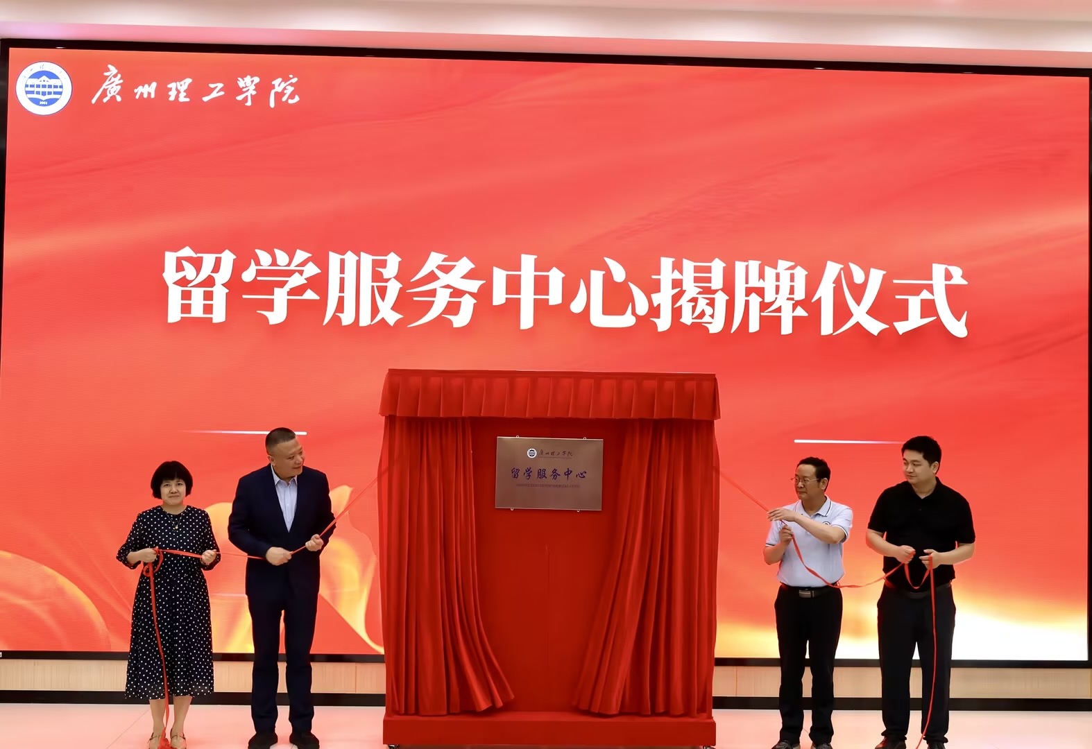随后,张日新、叶桂平、徐珑、蔡曼等领导嘉宾共同为广州理工学院留学服务中心揭牌。揭牌仪式后,副校长张日新宣布2026国际教育周正式开幕。